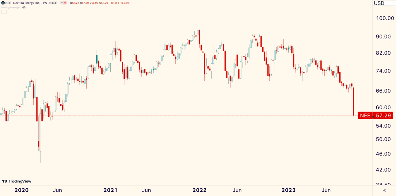 NextEra Energy ($NEE) is the New Low Standout of the Week. Last week, the renewable utility company cratered 15.38%, closing at its lowest price since May 2020.