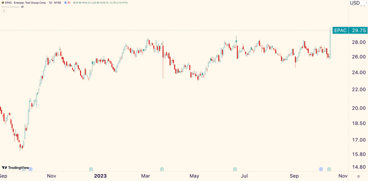 Enerpac Tool is the Best of the Best. The industrial enterprise flew 14.5% following last night’s earnings report, closing at its highest price since September 2018.