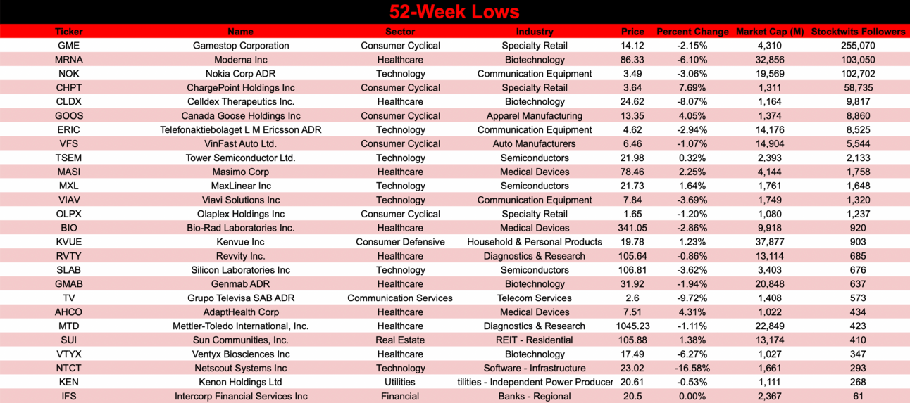 Moderna is the Worst of the Worst, again. The vaccine manufacturer stumbled -6.1% and is down -12.2% so far this week.