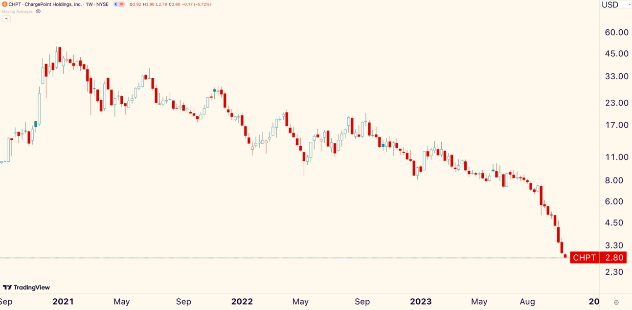 ChargePoint ($CHPT) is the Worst of the Worst. The EV charging network collapsed -5.72% and closed at an all-time low.