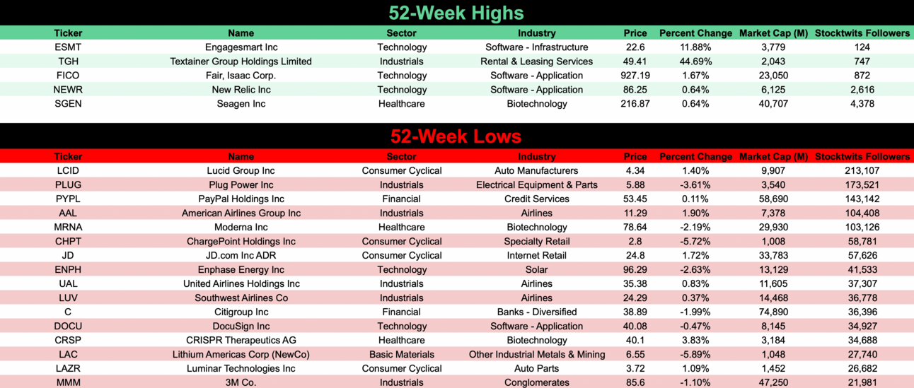 New 52-Week Lows crushed New Highs — 210 vs. 5.