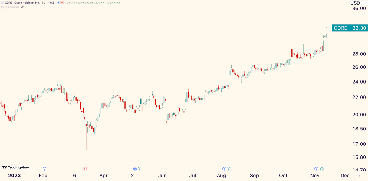 Cadre Holdings ($CDRE) is the Best of the Best. The safety and survivability product manufacturer marched +4.84% and closed at an all-time high.