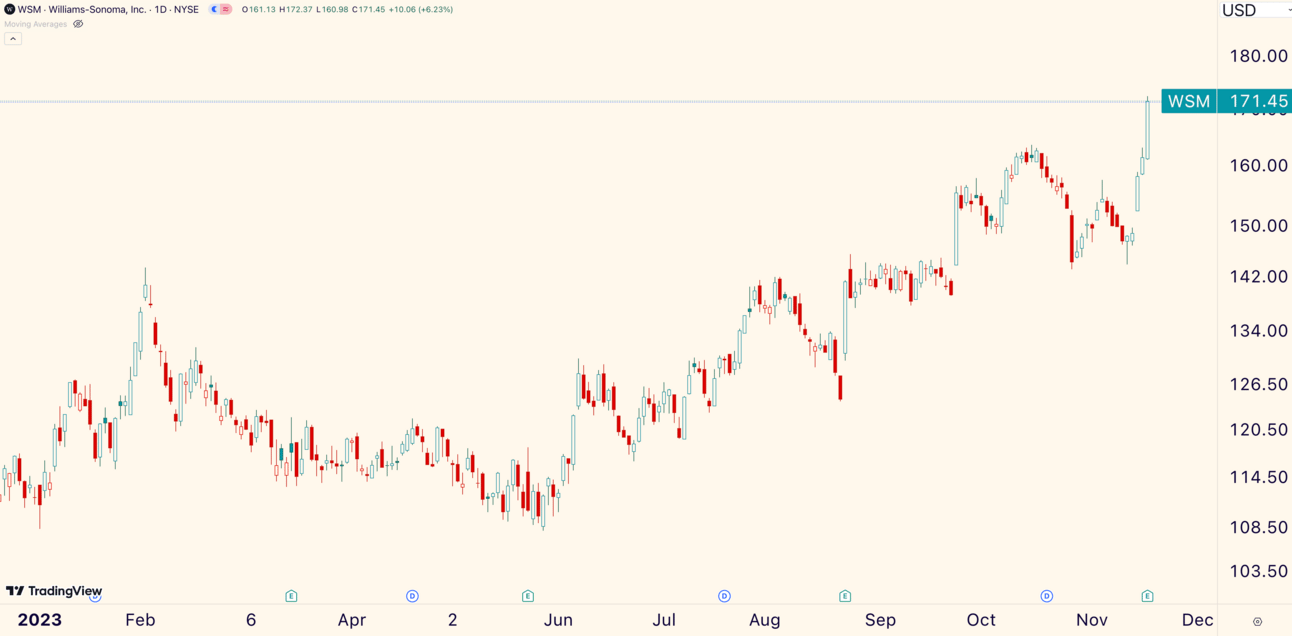 Williams-Sonoma ($WSM) is the Best of the Best. The home goods retailer waltzed +6.23% followings its Q3 earnings release.