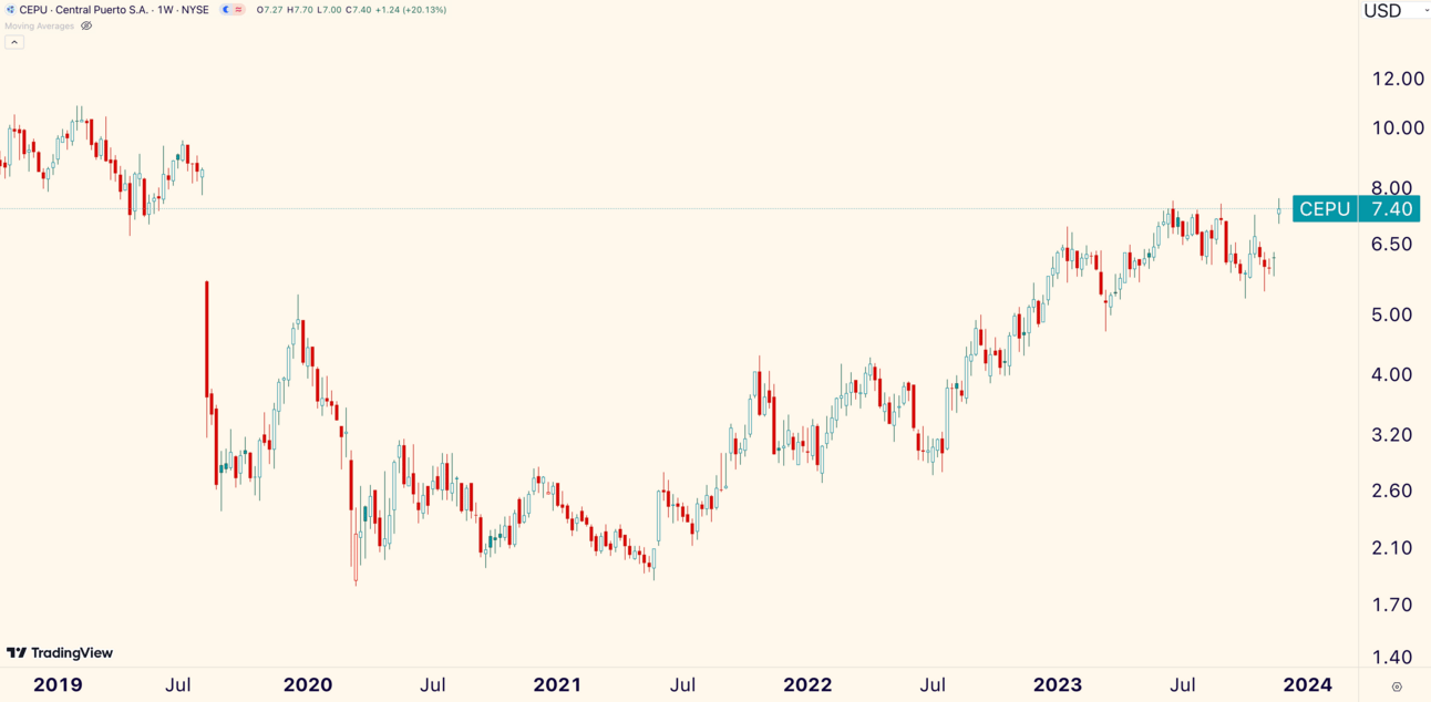 $CEPU ticked its highest price since August 2019. Here’s the weekly chart.