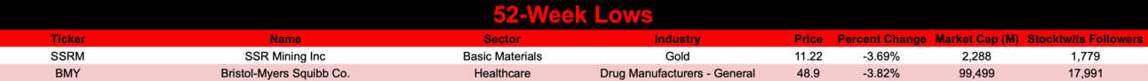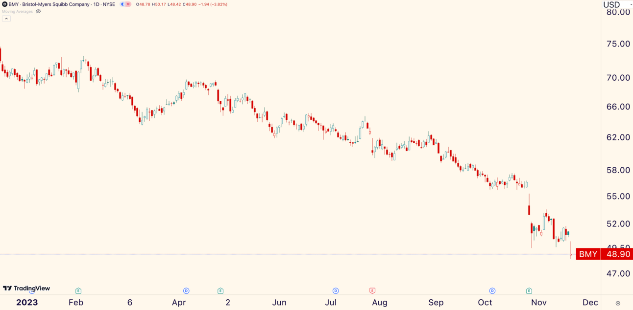 Bristol-Myers Squibb ($BMY) is the Worst of the Worst. The biopharmaceutical company bopped -3.82% and closed at its lowest price since April 2020.