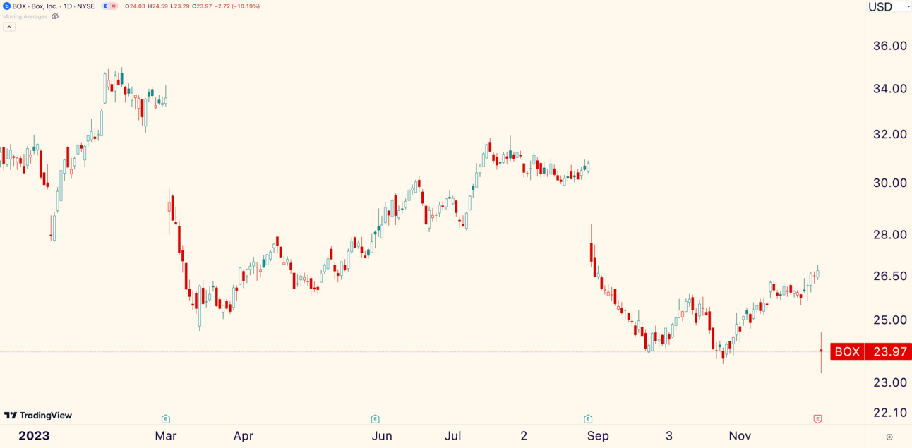 Box ($BOX) is the worst of the worst. The enterprise software company cratered -10.19% after its “soft” Q3 earnings release.