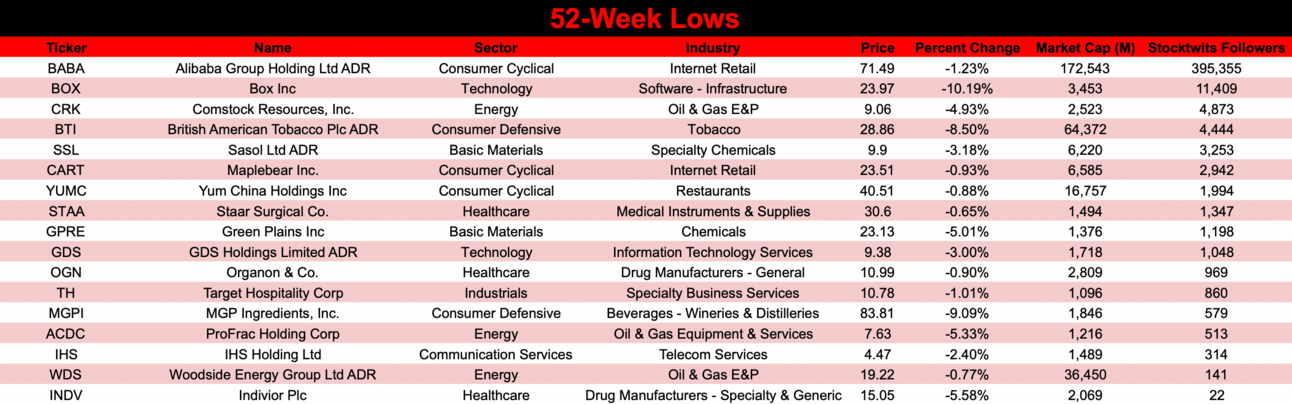 Signet Jewelers ($SIG) is the best of the best. The diamond jeweler jumped +6.19% and closed at its highest price since late-2021. Prior to yesterday’s session, $SIG beat earnings estimates and raised guidance. The stock is up 15.56% since its earnings release.