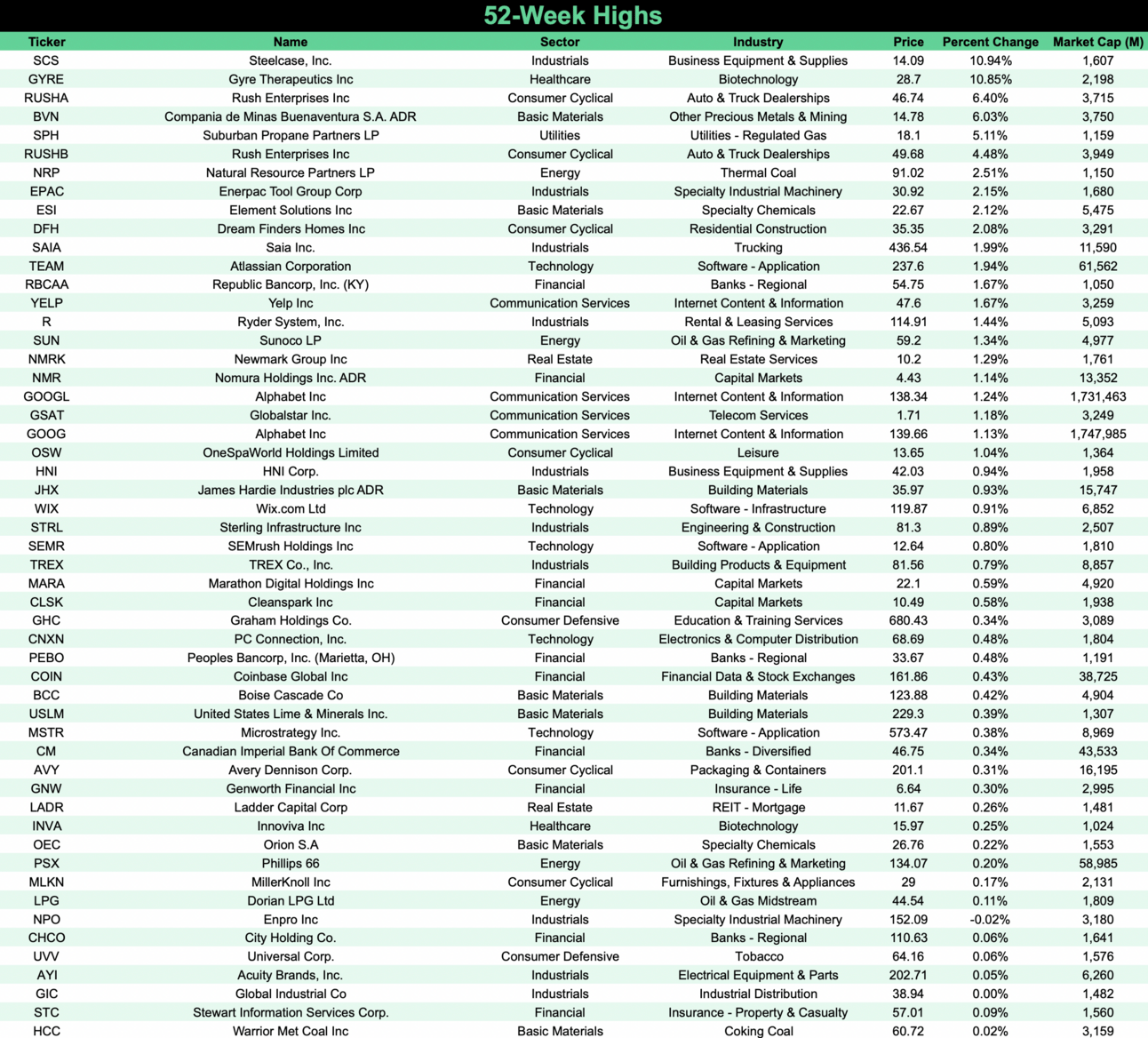 New 52-Week Highs outperformed New Lows — 279 vs. 7.