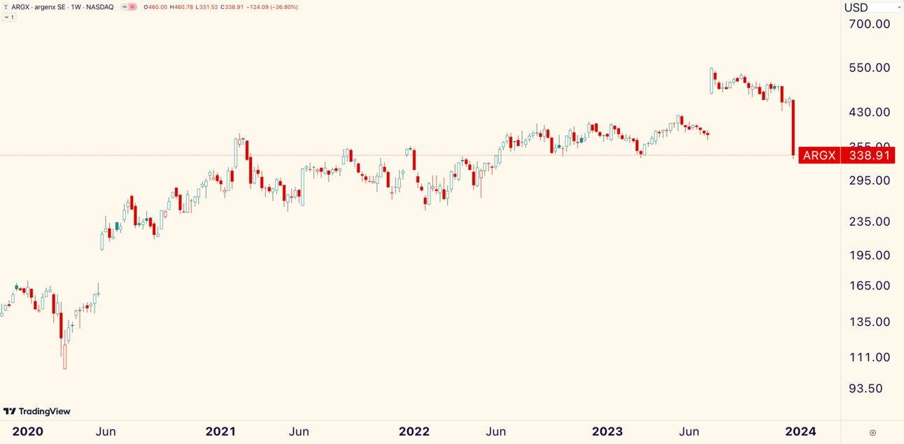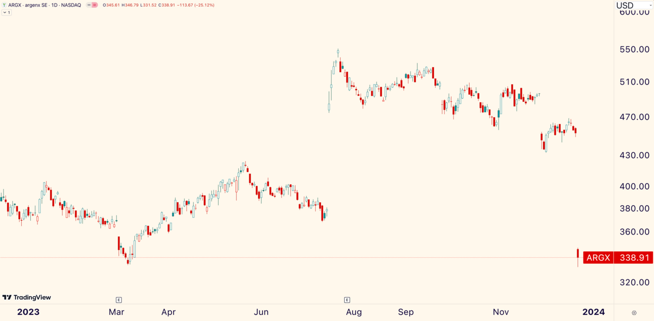 Argenx ($ARGX) is the worst of the worst. The Dutch biotech tumbled -25% after its treatment of pemphigus failed to meet its primary and secondary endpoints in its Phase 3 trial.