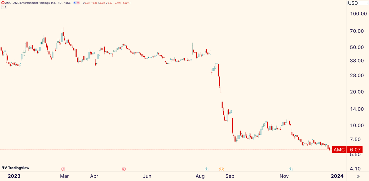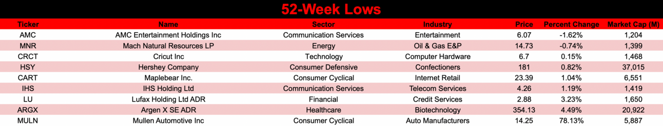 AMC Entertainment ($AMC) is the worst of the worst. The movie theater meme stock dropped -1.62% and closed at an all-time low.