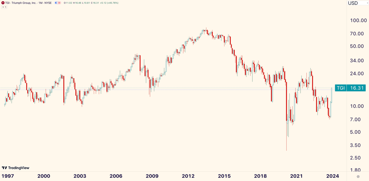 $TGI closed at its highest price since August 2022. The stock is still down -80% from its 2013 all-time high.