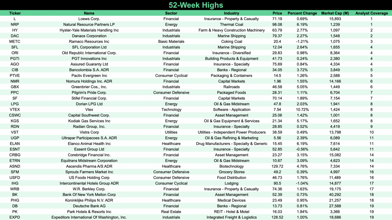 Friday’s New Highs + Lows