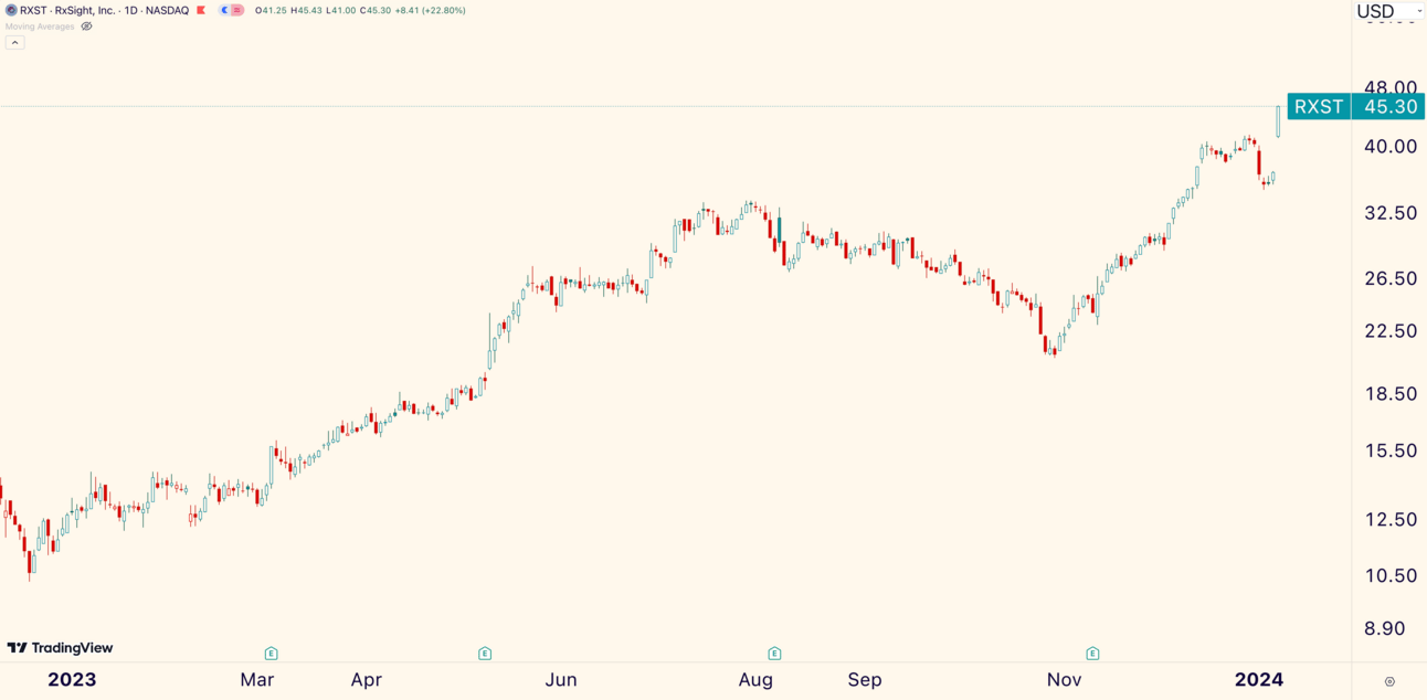 RxSight ($RXST) is the best of the best. The light adjustable lens manufacturer ripped +22.80% following its preliminary unaudited earnings release.