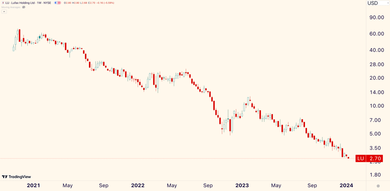 Lufax Holdings ($LU) is the worst of the worst. The Chinese fintech tumbled -5.59% and closed at an all-time low. The stock dropped -23.94% since its NYSE mandated reverse stock split.