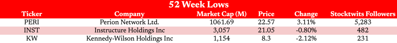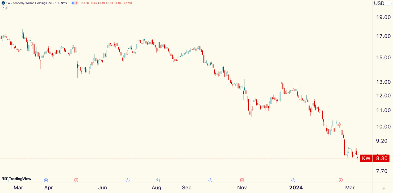 Kennedy-Wilson ($KW) is the worst of the worst. The real estate investment company cratered -2.12% and closed at its lowest price since November 2012.