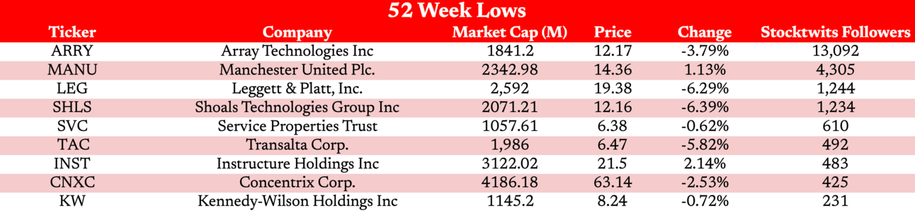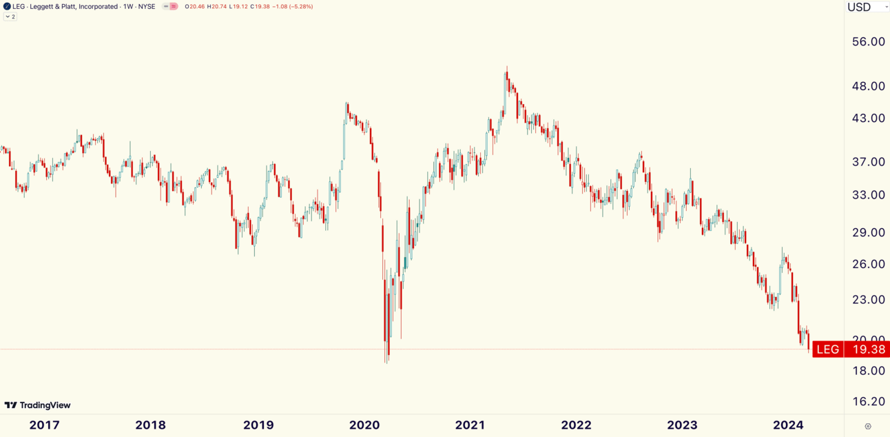 Leggett & Platt ($LEG) is the worst of the worst. The furniture manufacturer fell -6.29% and closed at its lowest price since April 2020.