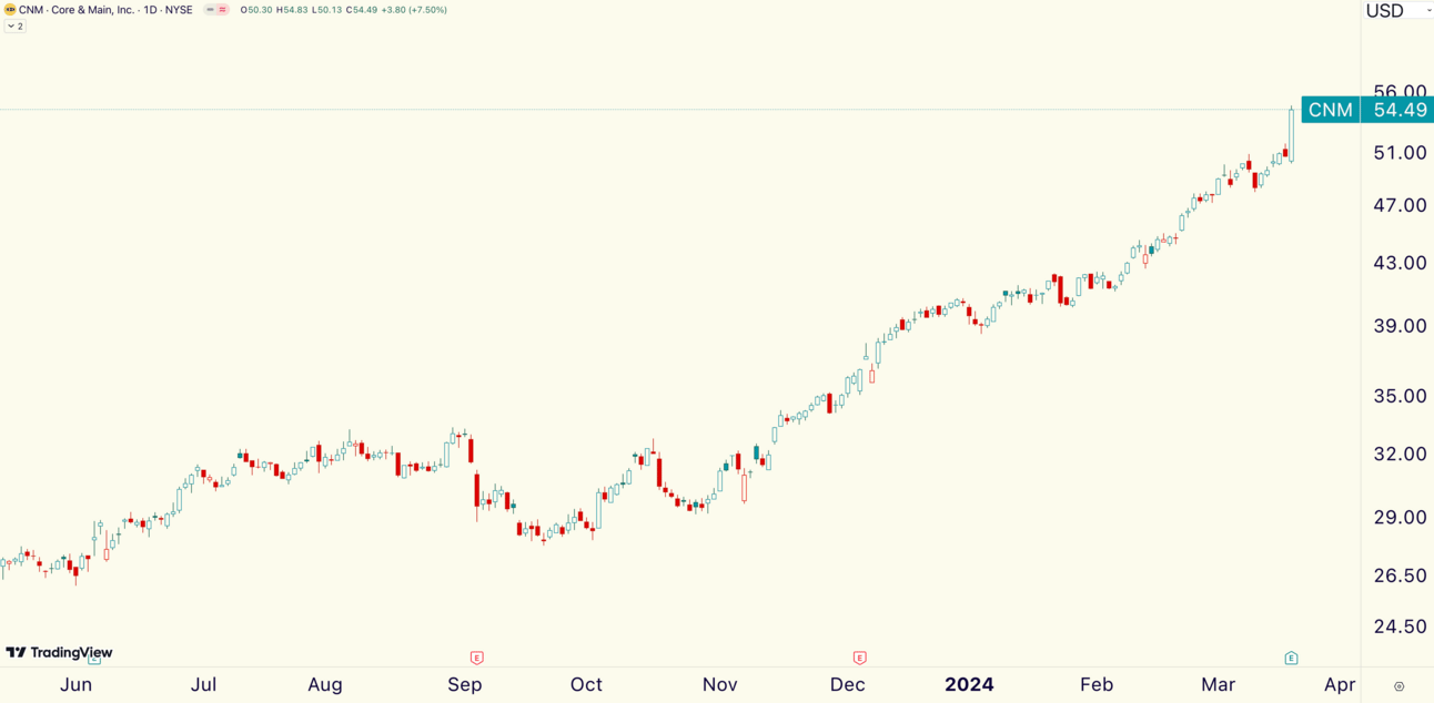 Core & Main ($CNM) is the best of the best. The water & wastewater product supplier surged +7.50% after it released Q4 earnings.