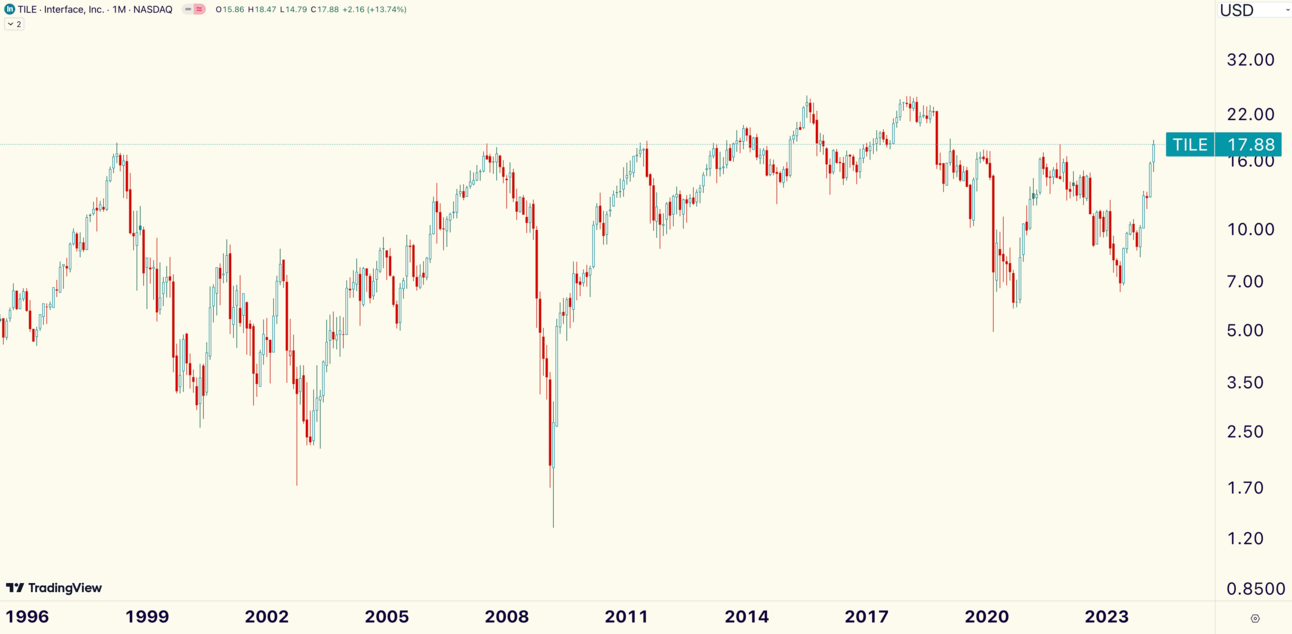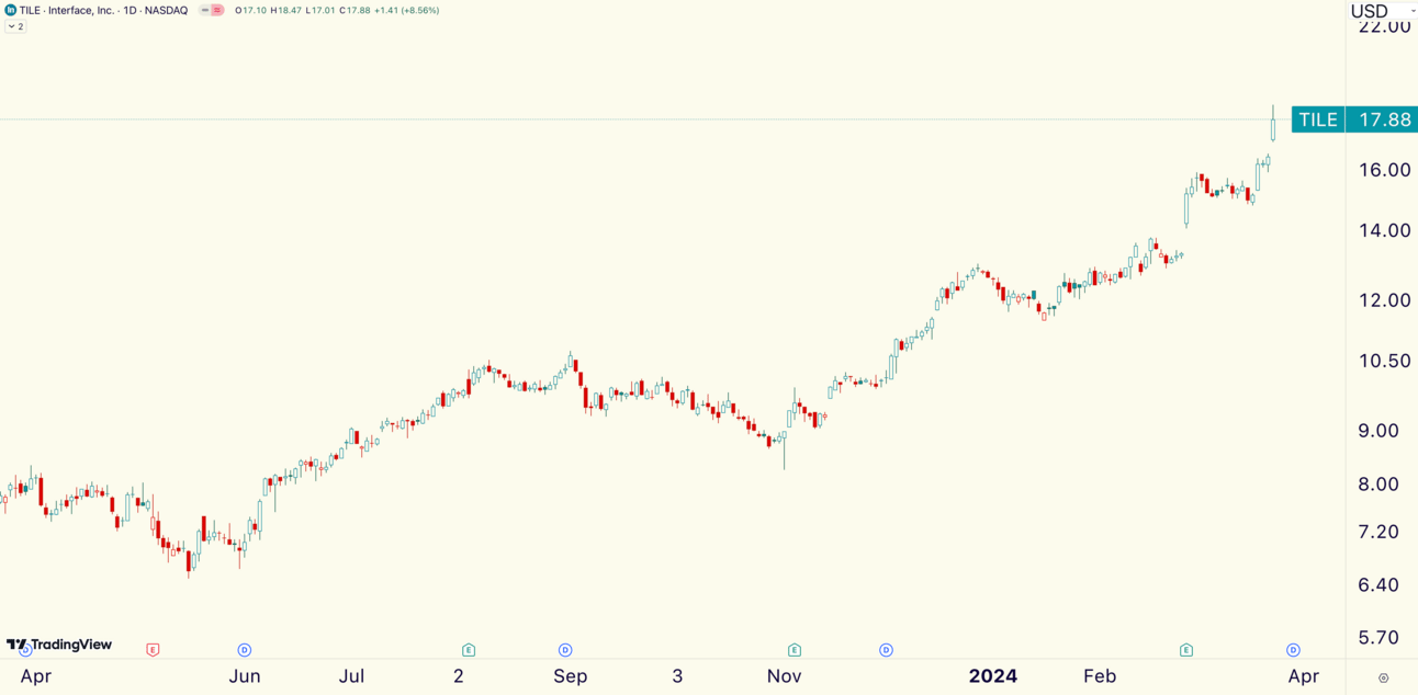 Interface ($TILE) is the best of the best. The flooring company flew +8.56% and closed at its highest price since February 2018.