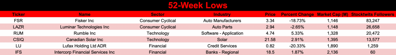 Fisker ($FSR) is the Worst of the Worst. The EV maker unplugged -18.73% following its failed earnings report.