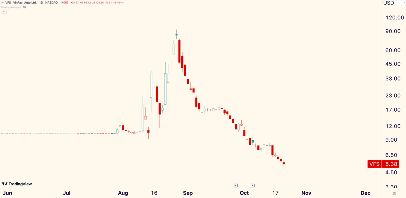 VinFast Auto is a Notable New Low. The Vietnamese EV collapsed -32.58% to an all-time low. The $12.5B company is down -93.5% from its Aug. 28th all-time high.