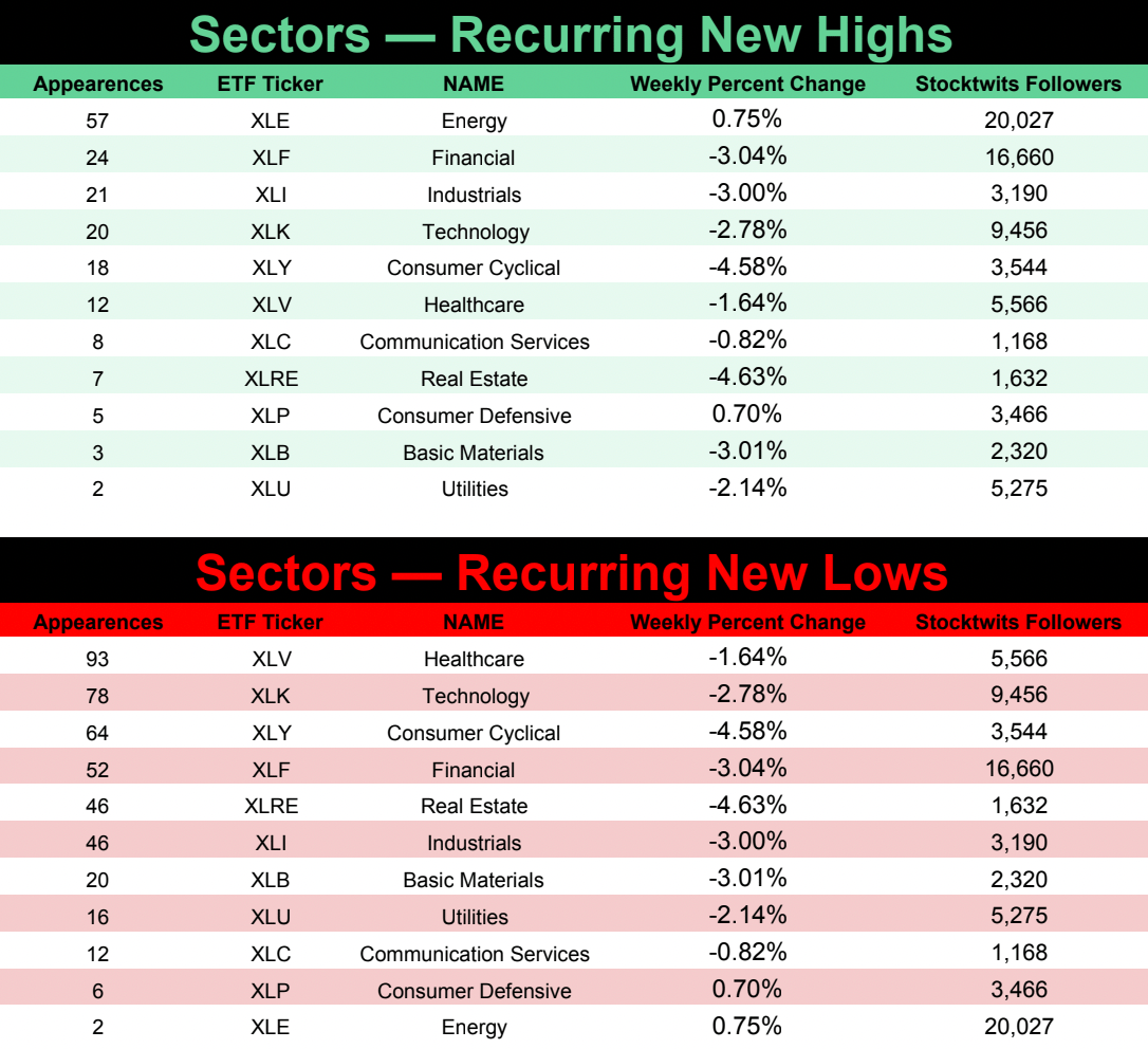 This special edition will include Friday’s New Highs and Lows as well as Repeat Offenders and Recurring Sectors + Industries.