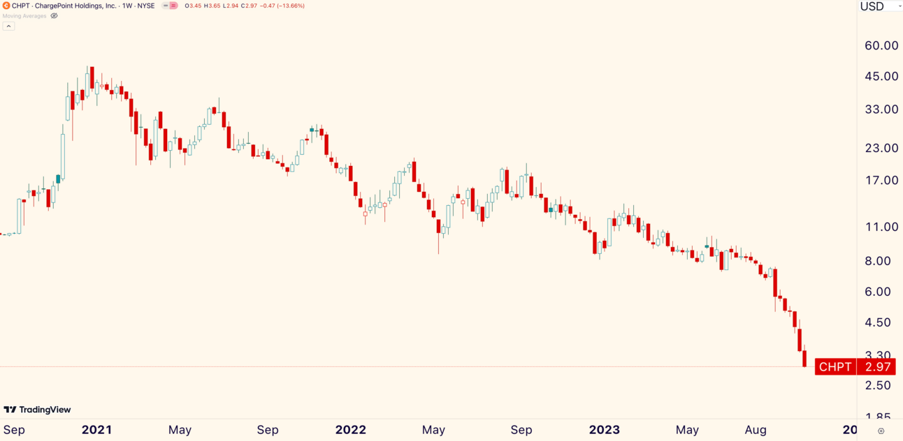 Last week marks ChargePoints 7th consecutive negative week. Here’s the weekly chart.